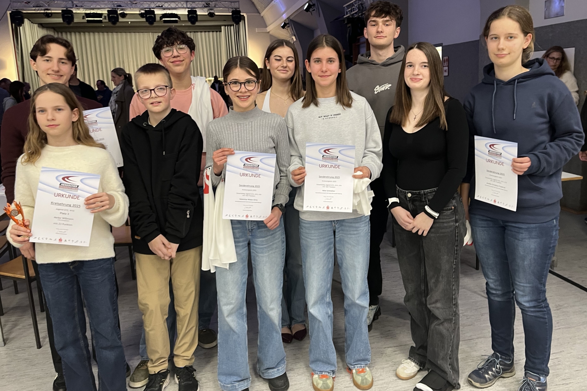 Ein starkes Jahr für die Leichtathletik des TSV Pfungstadt: Für ihre herausragenden sportlichen Leistungen im vergangenen Jahr wurden Patrick Freistoffer, Meike Wißmann, Mats Herbert, Max Kuban, Valentina Wiebe Ortiz, Naseria Maul, Nele Schmälter, Michail Gots, Charlotte Rau und Annika Friedrich vom Leichtathletik-Kreis Darmstadt-Dieburg im Vereinsheim der TG Traisa feierlich geehrt.